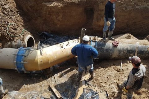 Varias horas después de lo previsto, terminaron las obras sobre el acueducto en Roca